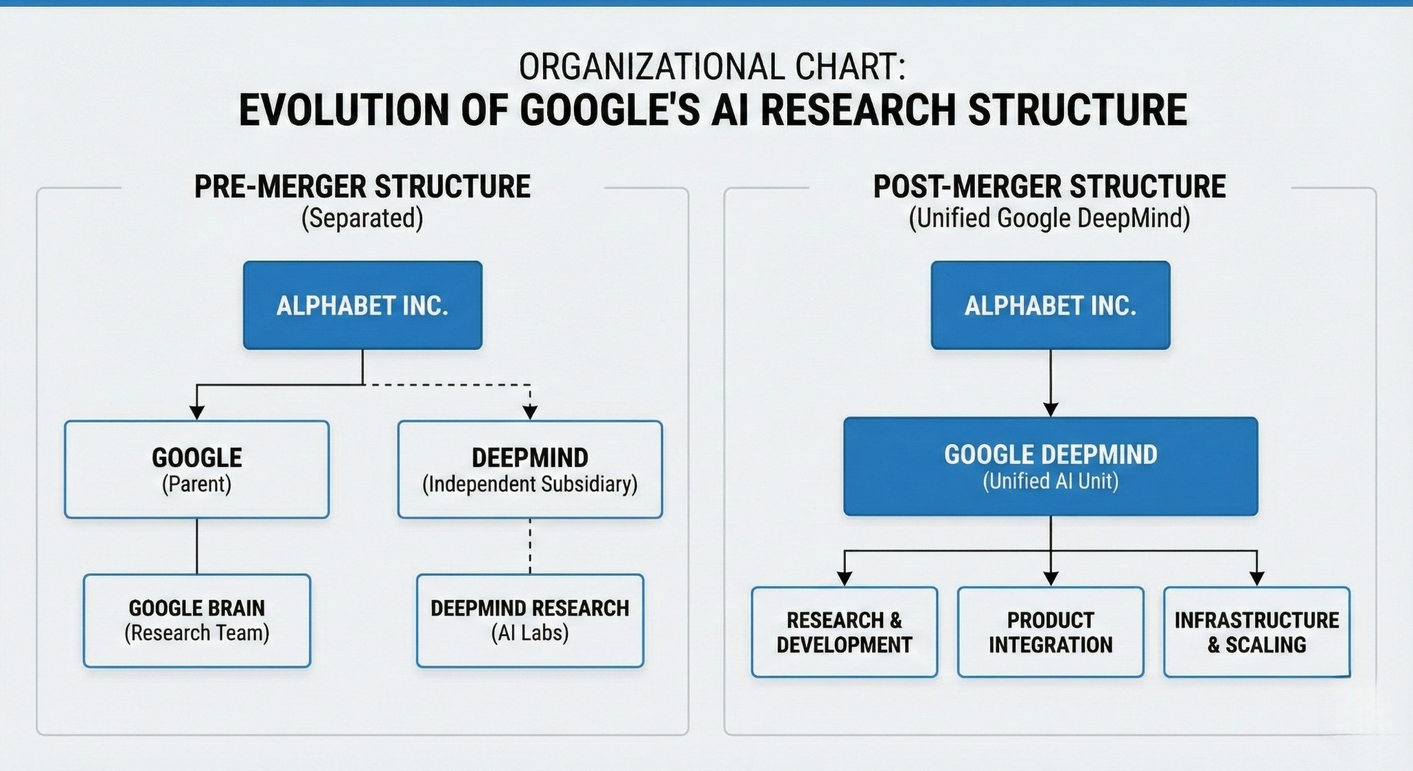 The merger ended years of internal tension. DeepMind executives had sought greater autonomy from Google; Google Brain researchers sometimes competed rather than collaborated with DeepMind. The ChatGPT threat forced unity.