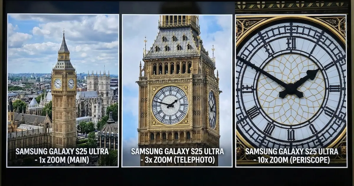 The S25 Ultra retains Samsung's kitchen-sink approach to mobile photography. The quad-camera setup includes a 200MP primary sensor, a new 50MP ultrawide (upgraded from 12MP on the S24 Ultra), a 10MP 3x telephoto, and a 50MP 5x periscope telephoto. This configuration excels at zoom photography, with usable results extending well beyond 10x magnification.