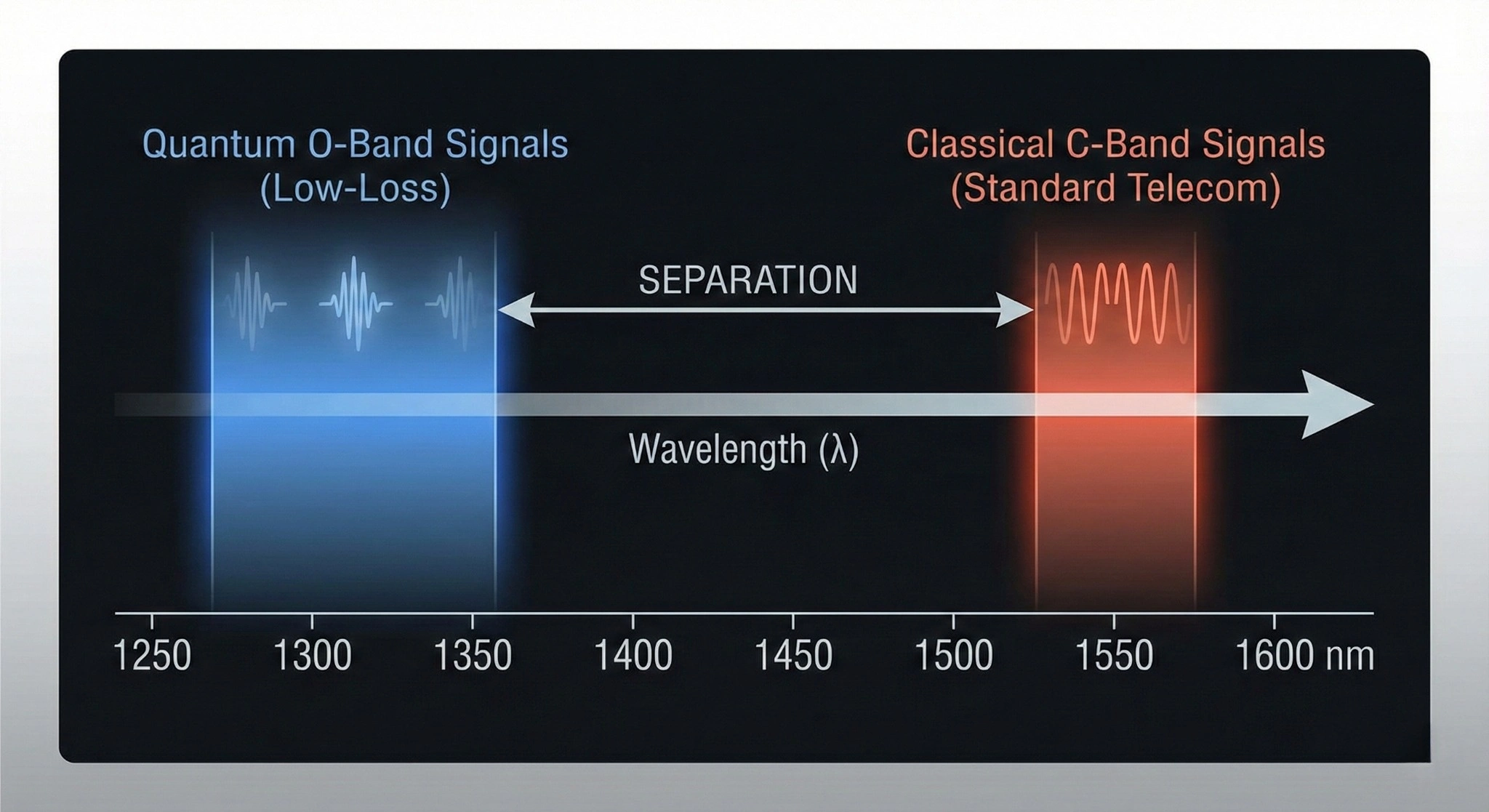 Kumar's team found a clever workaround. They conducted extensive studies on how light scatters within fiber optic cables and identified a less crowded wavelength where their quantum photons could travel relatively undisturbed. The quantum signals operated at around 1290 nanometers in the O-band, while conventional internet traffic blazed through the heavily-used C-band at 1547 nanometers.
