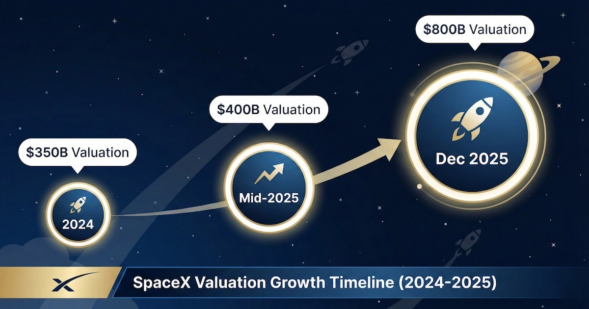 The trajectory here is genuinely remarkable. In 2024, SpaceX was valued at roughly $350 billion. By mid-2025, that figure hit $400 billion. Now, in December 2025, we're looking at $800 billion. That's a 128% increase in about 18 months for a company that's been around since 2002.